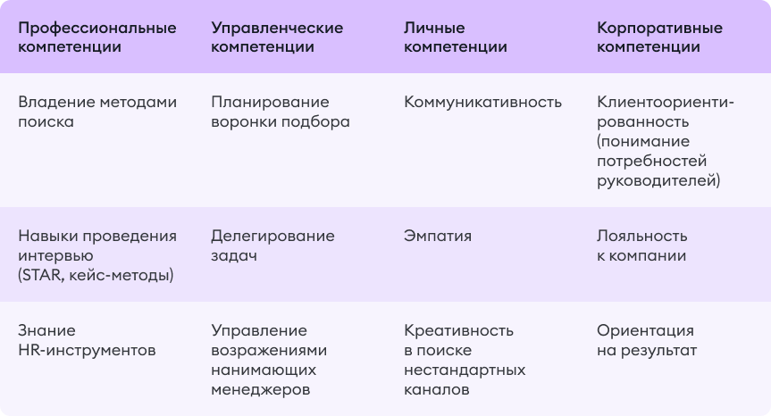 Так может выглядеть набор компетенций рекрутера